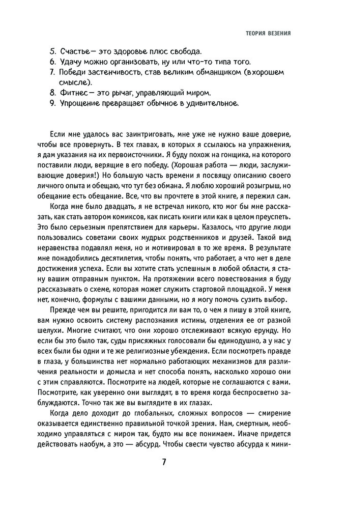 Теория везения. Практическое пособие по повышению вашей удачливостиВ данный момент этот товар отсутствует в продаже. Возможно, у нас найдется аналогичный или похожий товар здесь. Серия: Top Business Awards Скотт Адамс отбрасывает фантики и делится своим опытом и выводами, к которым он пришел за свою жизнь: «Удачу можно организовать, ну или что-то типа того». Он пострадал от неудач в своей жизни больше, чем кто-либо, кого вы когда-либо встречали. Он прошел путь от несчастного офисного планктона к автору всемирно известных комиксов Dilbert. Стратегия достижения успеха Скотта заключается в том, чтобы лелеять случившуюся неудачу, обнять ее, а затем положить в карман и не забывать. |