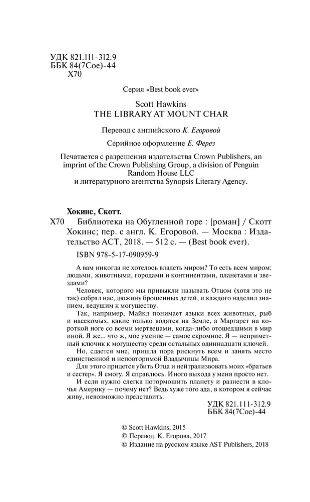 Библиотека на Обугленной гореВ данный момент этот товар отсутствует в продаже. Возможно, у нас найдется аналогичный или похожий товар здесь. Серия: Best book ever А вам никогда не хотелось владеть миром? То есть всем миром: людьми, животными, городами и континентами, планетами и звездами? |