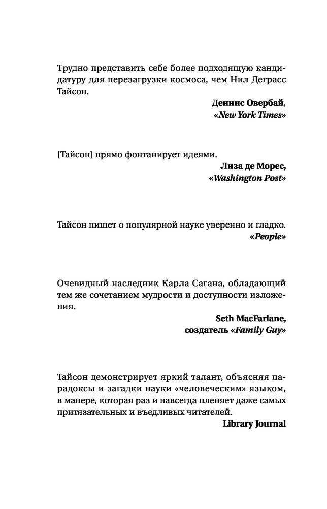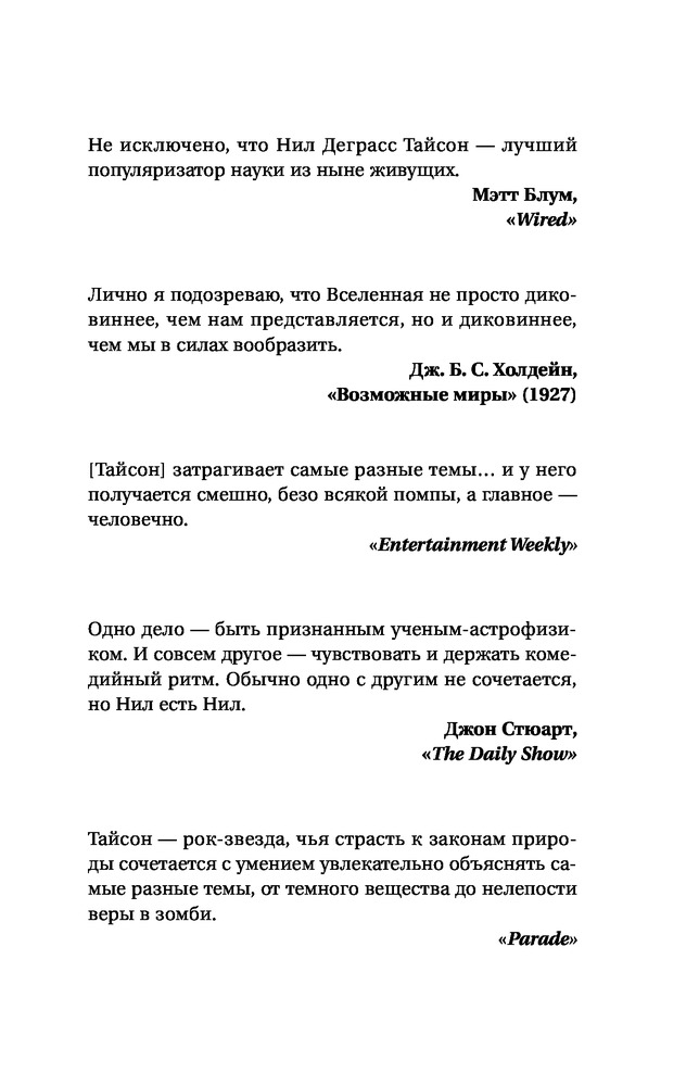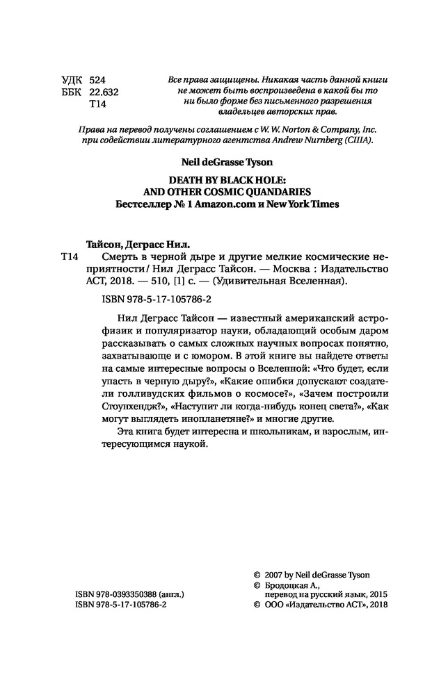 Смерть в черной дыре и другие мелкие космические неприятностиВ данный момент этот товар отсутствует в продаже. Возможно, у нас найдется аналогичный или похожий товар здесь. Серия: Удивительная Вселенная Нил Деграсс Тайсон — известный американский астрофизик и популяризатор науки, обладающий особым даром рассказывать о самых сложных научных вопросах понятно, захватывающе и с юмором. В этой книге вы найдете ответы на самые интересные вопросы о Вселенной: Что будет, если упасть в черную дыру? Какие ошибки допускают создатели голливудских фильмов о космосе? Зачем построили Стоунхендж? Наступит ли когда-нибудь конец света? Как могут выглядеть инопланетяне? и многие другие. Эта книга будет понятная и интересна и школьникам, и взрослым, интересующимся наукой. |