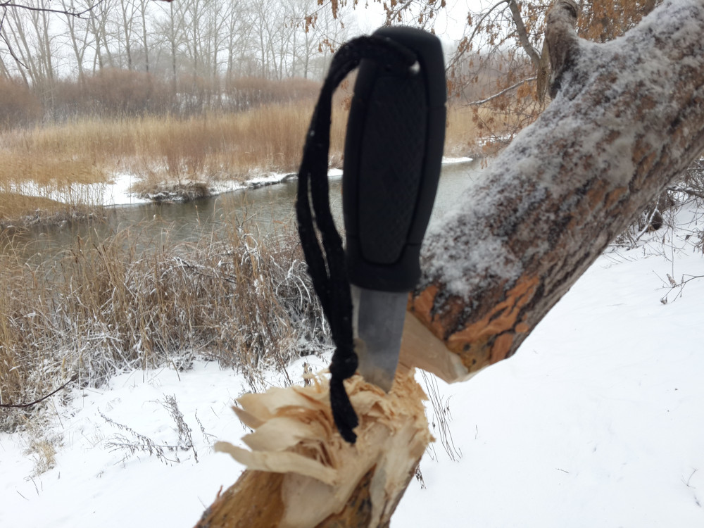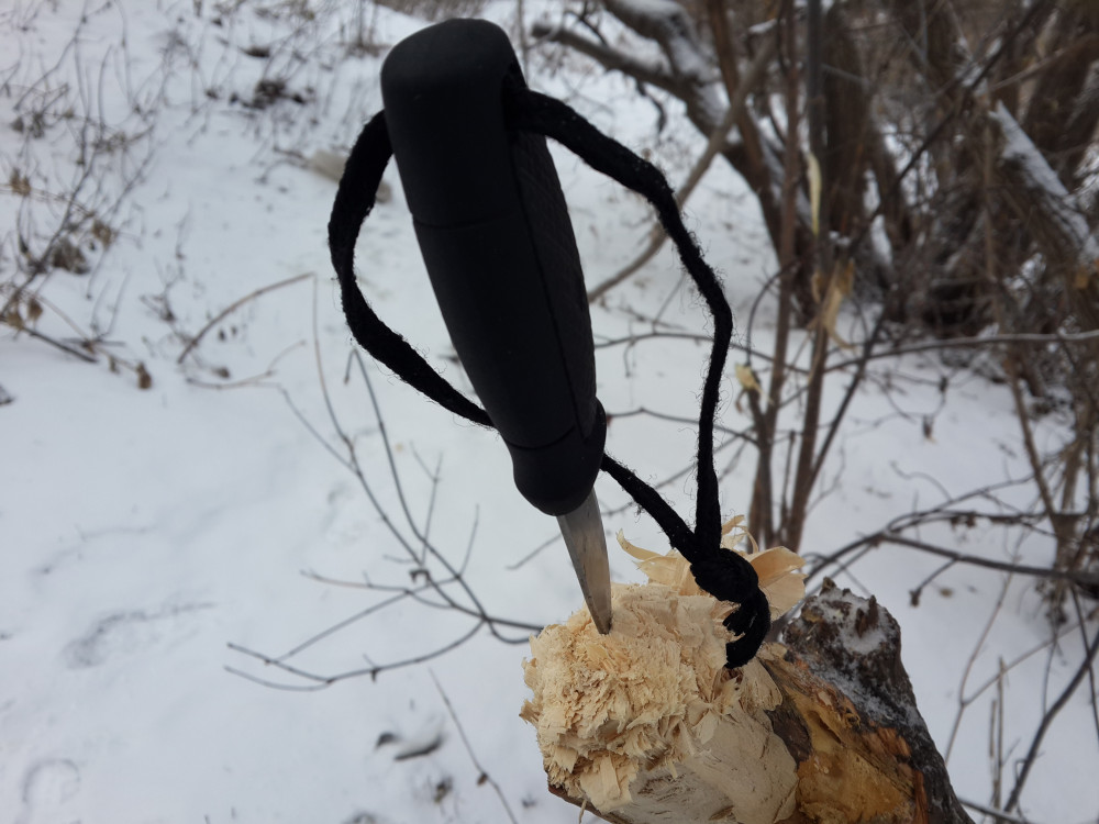Нож, не скажу что удобный, но с мелкими задачами справляется, продукты резать им неудобно, в дерево неплохо вгрызается. В общем для ножа ошейника сойдет.