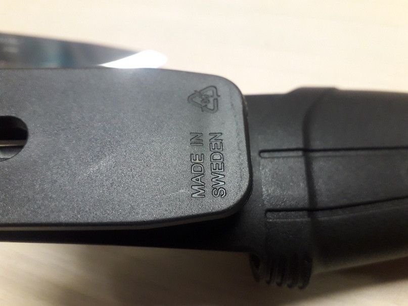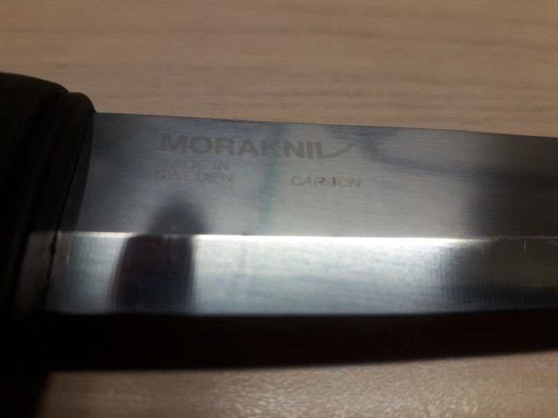 Этот робастик действительно грибной! Трухлявая доска погнула его кончик. Потом я его выпрямил в обратную сторону. Следующее вонзание в деревяху и доска забрала его с собой. Заточка классная, кончик был острый). Все четко. Made in sweden carbon(углеродка) клинок в рукоятке с небольшой щелью, но не люфтит. Клинок по центру. Обух по классике жанра моры со штамповкой. Мне кажется это оригинальная, но бракованная партия. Сравнивали с mora companion с тонюсеньким кончиком и обухом 2мм. И она одолела этот робаст. Можно точить на ruixin pro