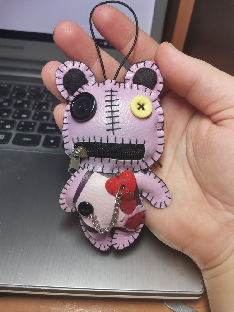 Милая безделушка, повешу на рюкзак. Петля сверху из резинки, первая мысль была повесить на зеркало в машине.