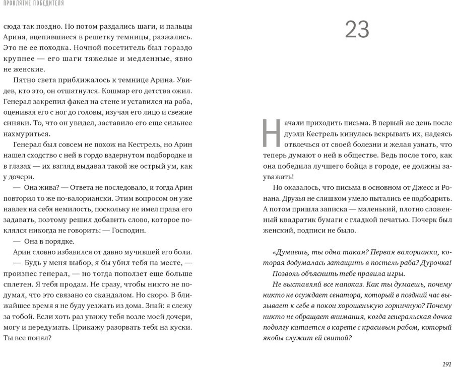 Перед Кестрель стоит сложный выбор: отправиться в армию или выйти замуж. Эти пути — не для нее, она хочет сама определить свою судьбу. Однажды на аукционе Кестрель покупает раба, который не похож на остальных гэррани — народ, некогда покоренный Валорианской империей. Но она не догадывается, какую опасную тайну скрывает Арин.
