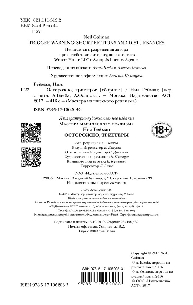 Мой любимый сборник рассказов у Геймана. Самые загадочные, таинственные и глубокие. Отдельное удовольствие - читать предисловия)) По поводу издания - соответствие цены-качества.