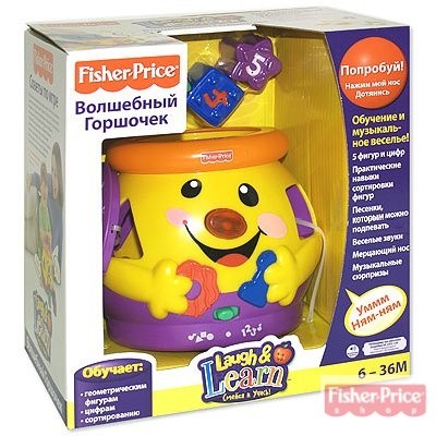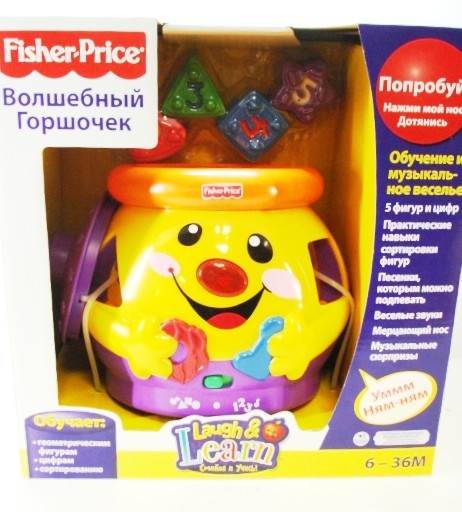 Fisher-Price Волшебный горшочекВ данный момент этот товар отсутствует в продаже. Возможно, у нас найдется аналогичный или похожий товар здесь. Серия: Смейся и учись Волшебный горшок "Смейся и учись" компании Fisher-Price – это развивающая игрушка, которая в веселой игровой форме познакомит ребенка с основными цветами, формами, обучит счету от 1 до 5. |