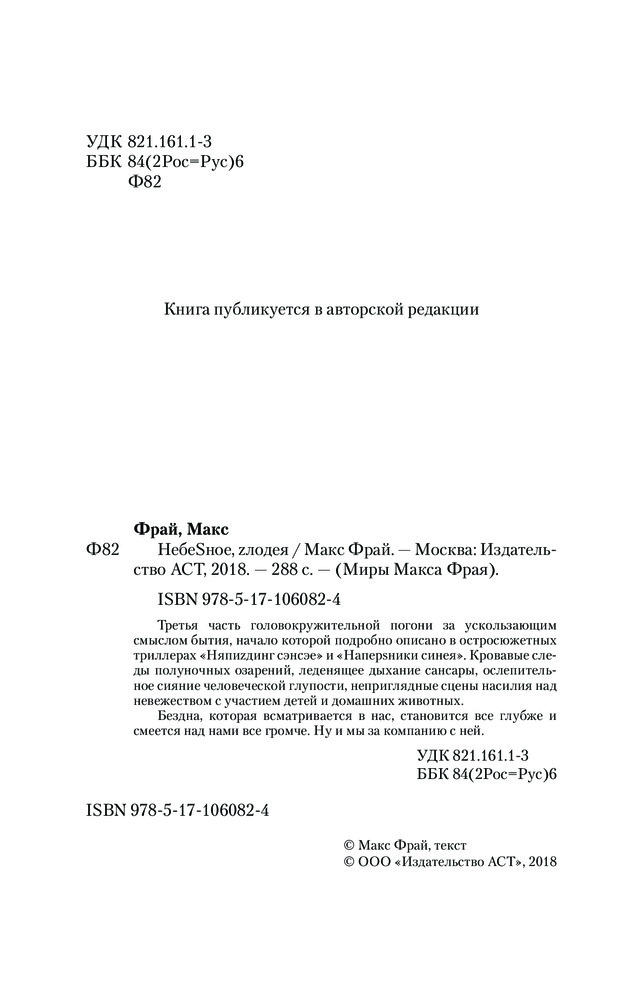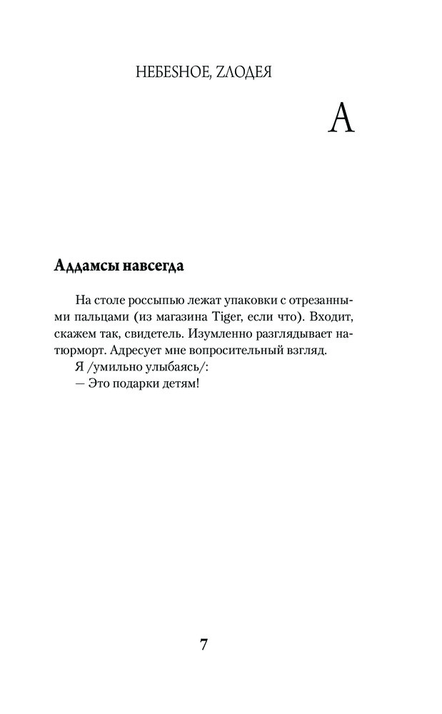 Небеsное, zлодеяВ данный момент этот товар отсутствует в продаже. Возможно, у нас найдется аналогичный или похожий товар здесь. Серия: Миры Макса Фрая Третья часть головокружительной погони за ускользающим смыслом бытия, начало которой подробно описано в остросюжетных триллерах «Няпиzдинг сэнсэе» и «Наперsники синея». Кровавые следы полуночных озарений, леденящее дыхание сансары, ослепительное сияние человеческой глупости, неприглядные сцены насилия над невежеством с участием детей и домашних животных. Бездна, которая всматривается в нас, становится все глубже и смеется над нами все громче. Ну и мы за компанию с ней. |