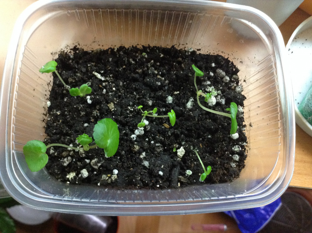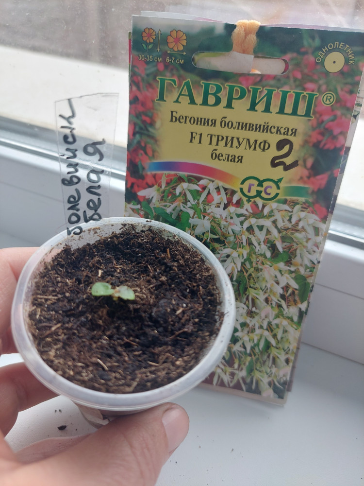 Вот. Сеяла аж в январе. Пикировала в грунт "бегония" + перлит и вермикулит.