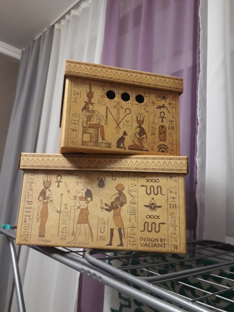 В данный момент этот товар отсутствует в продаже. Возможно, у нас найдется аналогичный или похожий товар здесь. Серия: Egypt Набор из двух оригинальных картонных коробов для хранения. Изделия легко и быстро складываются. Оснащены крышками и тремя отверстиями для комфортного выдвигания.