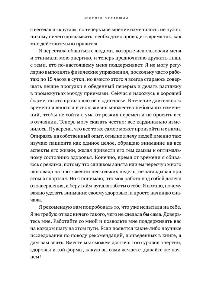Человек уставший. Как победить хроническую усталость и вернуть себе силы, энергию и радость жизниВ данный момент этот товар отсутствует в продаже. Возможно, у нас найдется аналогичный или похожий товар здесь. Почему все вокруг вечно такие уставшие? Как семейный врач и одна из представительниц Национальной службы здравоохранения Великобритании я то и дело задаюсь этим вопросом. Почему многие мои пациенты постоянно чувствуют себя утомленными? Почему так измотаны все мои друзья? Черт, из-за чего я сама настолько устаю, что отменяю пятничные вечерние походы в бар ради того, чтобы упасть на диван и отключиться, хотя нет еще и одиннадцати? |