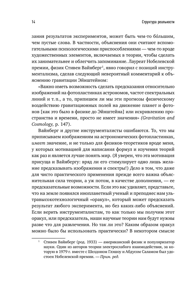 Структура реальности. Наука параллельных вселенныхВ данный момент этот товар отсутствует в продаже. Возможно, у нас найдется аналогичный или похожий товар здесь. Книга британского физика и философа Дэвида Дойча, одного из создателей концепции квантовых вычислений, наглядно демонстрирует, что эпоха великих философских систем вовсе не осталась в прошлом. Автор выстраивает целостный и согласующийся с научными знаниями ответ на один из самых фундаментальных философских вопросов: какова подлинная природа реальности. |