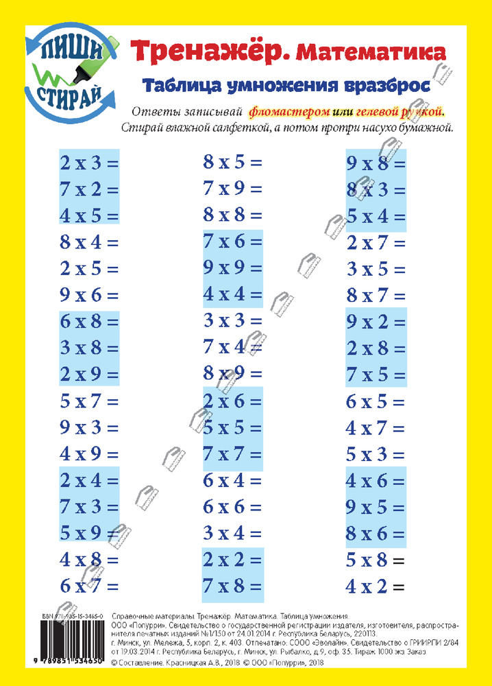 Хороший полезный тренажёр по математике на умножение . Внуку понравился , покупкой доволен . Рекомендую