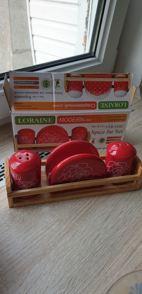 Loraine Набор для специй «Цветы на красном» (4 предмета)В данный момент этот товар отсутствует в продаже. Возможно, у нас найдется аналогичный или похожий товар здесь. Серия: Цветы на красном Набор для специй состоит из солонки, перечницы, салфетницы и деревянной подставки. Предметы набора выполнены из доломитовой керамики высокого качества и красиво оформлены. Отверстия, в которые засыпаются специи, закрыты силиконовыми пробками. Благодаря своим небольшим размерам набор не займет много места на вашей кухне. Дизайн, эстетичность и функциональность набора позволят ему стать достойным дополнением к кухонному инвентарю. |