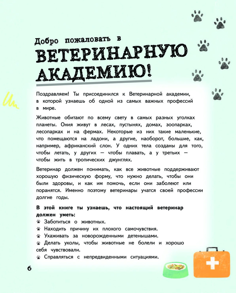 Если ответ положительный — почему бы не поступить в Ветеринарную академию? Ты научишься обращаться с собаками и кошками, присматривать за черепашками, узнаешь, как сделать животных в зоопарке счастливыми и еще много, много, много полезной информации. Эта книга полна интересных фактов, игр, тестов и заданий, которые помогут ребенку познакомиться с миром ветеринаров.