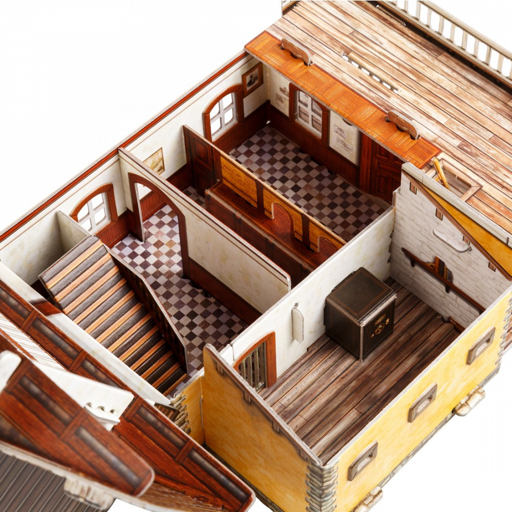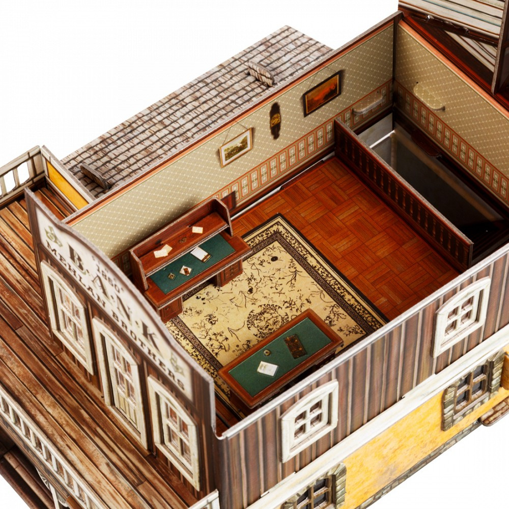 В данный момент этот товар отсутствует в продаже. Возможно, у нас найдется аналогичный или похожий товар здесь. Серия: Дикий Запад Для сборки модели не понадобятся режущие инструменты или клей. Детали уже вырезаны и нужно просто вынуть их из листа картона и соединить между собой.
