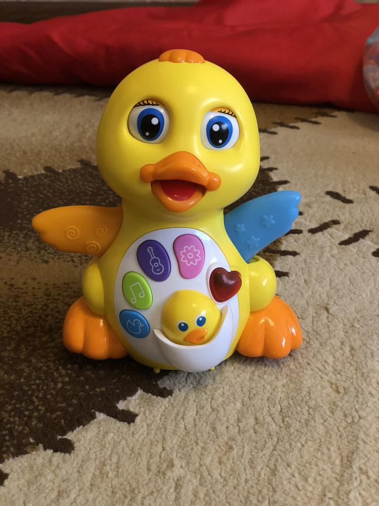 Очень нравится игрушка! Взяла доче 10 месяцев. Уточка ездит и поет песенки, моргает гразками, шевечит крылышками. Доче очееь нравится