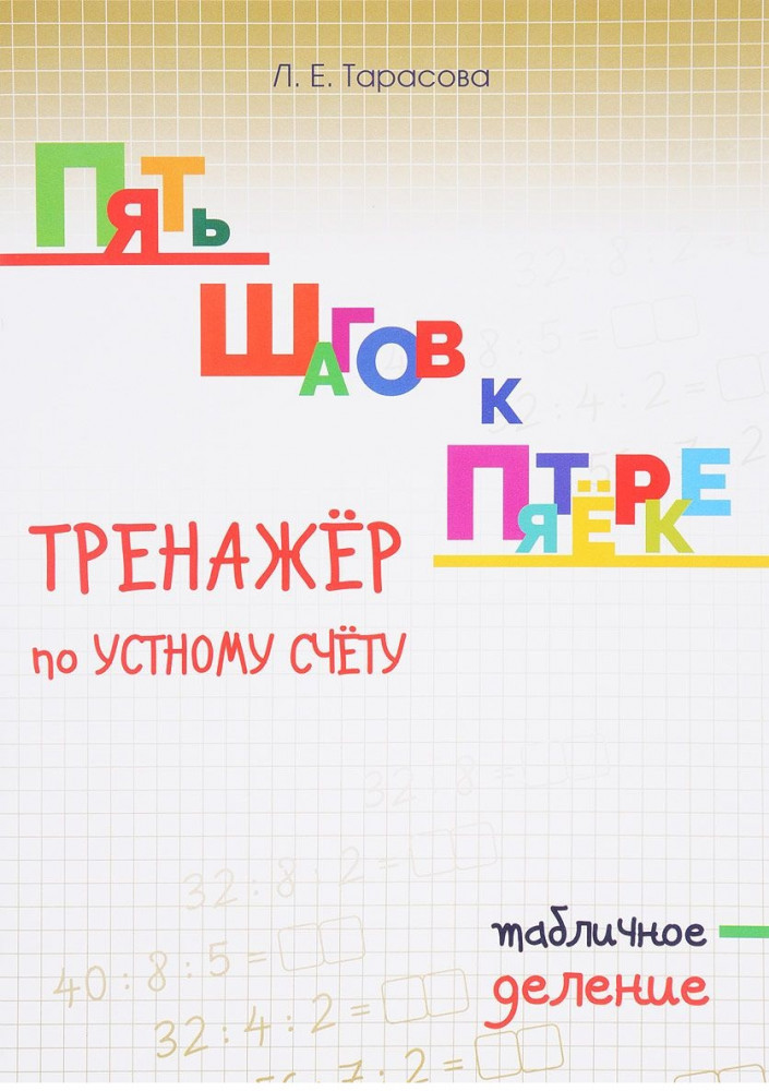 «Пять шагов к пятёрке» — новый вид тренажёра, целью которого является тренировка учащихся в усвоении таблицы сложения-вычитания чисел. В данной тетради представлены примеры с переходом через десяток.