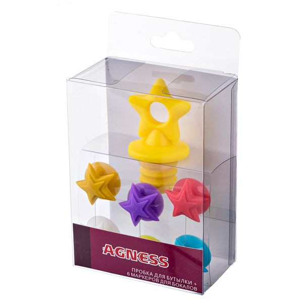 Не секрет, что если оставить бутылку с вином или шампанским открытой, напиток, под воздействием воздуха, заветрится и потеряет свои вкусовые качества. Чтобы этого не произошло, его достаточно просто закрыть, однако «родная» бутылочная пробка не всегда для этого годится. Как быть спросите вы? Представляем вам набор: пробка для бутылки и маркеры для бокалов Agness.