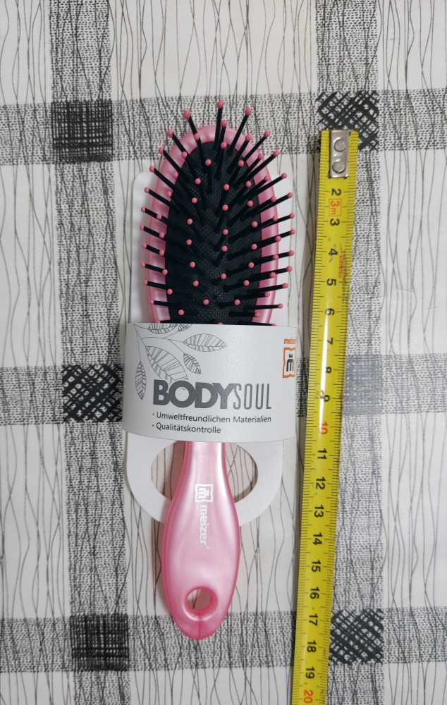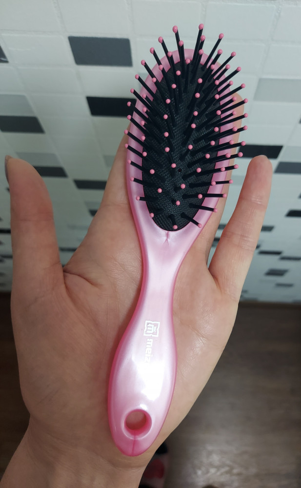Расчёска очень понравилась.Мягкие зубья,свои короткие волосы приятно причёсывать.