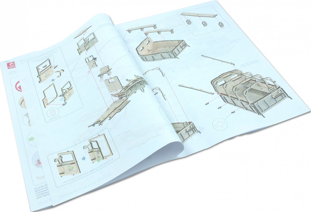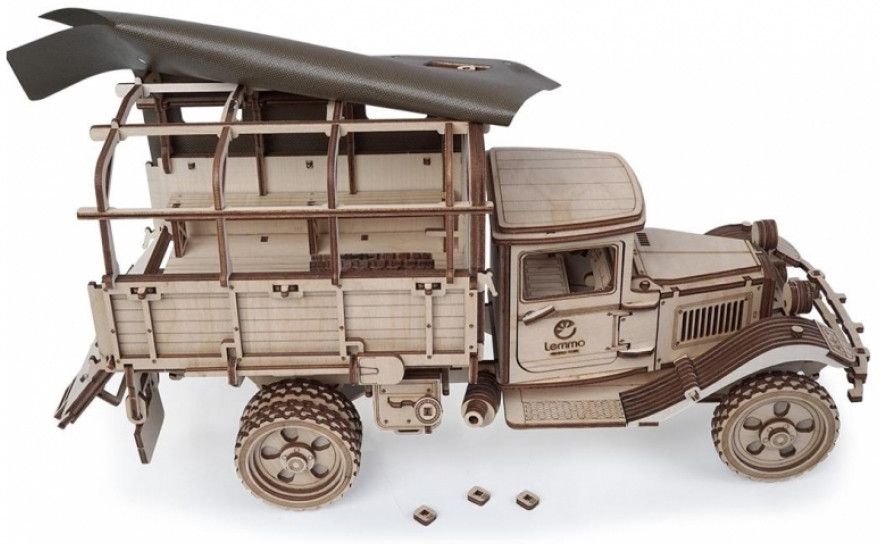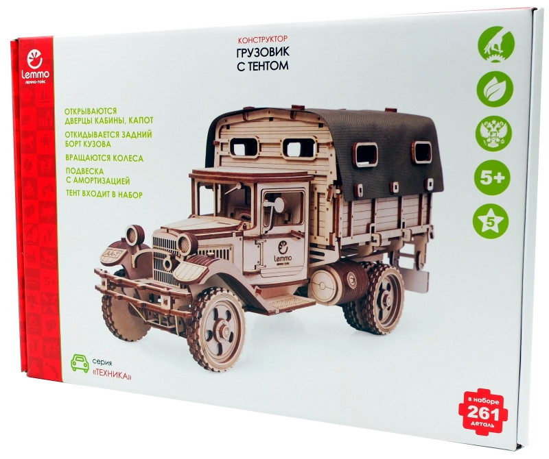 Lemmo Конструктор деревянный 3D «Грузовик Полуторка»В данный момент этот товар отсутствует в продаже. Возможно, у нас найдется аналогичный или похожий товар здесь. Серия: Гражданская техника Новая серия «Полуторка» пополнилась очередной моделью. Грузовик с тентом собирается с минимальным использованием клея. Собранная модель имеет большой масштаб и крутой нрав. Открывается все, что может открываться. Может ехать и имеет амортизацию переднего моста. Тент входит в набор. У модели вращаются колеса, открываются дверцы кабины, капот, откидывается задний борт кузова. Подвеска с амортизацией. |