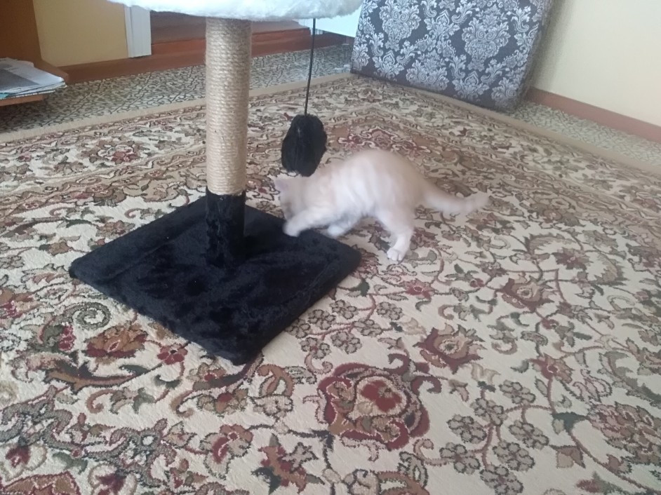 В целом неплохая, но для большой кошки уже не подойдёт, по размеру маленькая будет.. Через пару недель ломалось креплении, отдавали в ремонт. В скором времени Котенок оторвал шарик