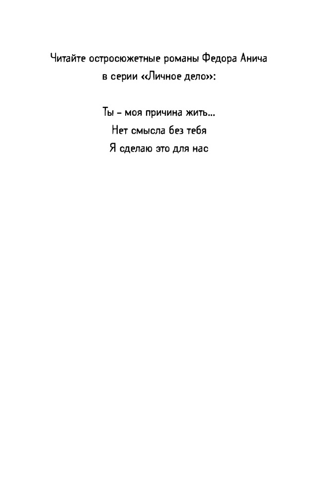 Ты - моя причина жить...В данный момент этот товар отсутствует в продаже. Возможно, у нас найдется аналогичный или похожий товар здесь. Серия: Личное дело. Остросюжетные романы Ф.Анича «Ваша жизнь наполнена страхами? Живете одним днем, не зная, что будет завтра? Каждый день ощущаете себя лишним в обществе? Федор Анич знает рецепт от Ваших страхов! Он уверен, что даже в самой безнадёжной ситуации можно найти выход. Автор мастерски склеивает разбитые судьбы и решает самые сложные жизненные головоломки.» |