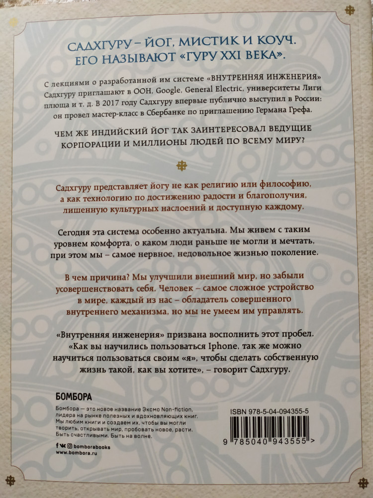 Внутренняя инженерия. Путь к радости. Практическое руководство от йога-20% качество печати качественный переплёт белые страницы удобный шрифт