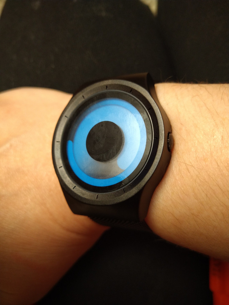 Супер-часики. Вместо стрелок голубые линии - очень необычно. Спасибо, Флип!
