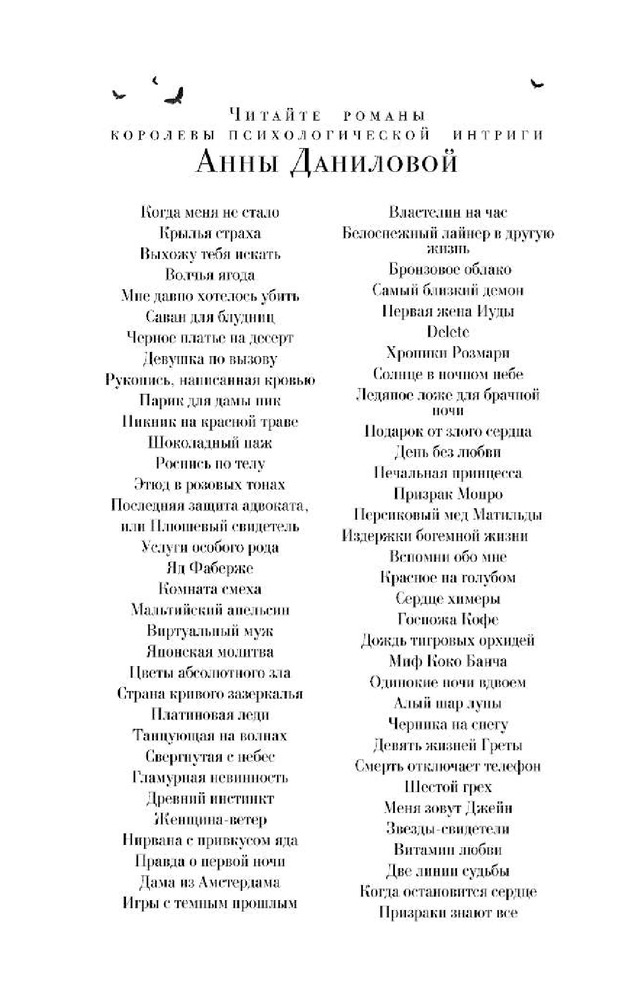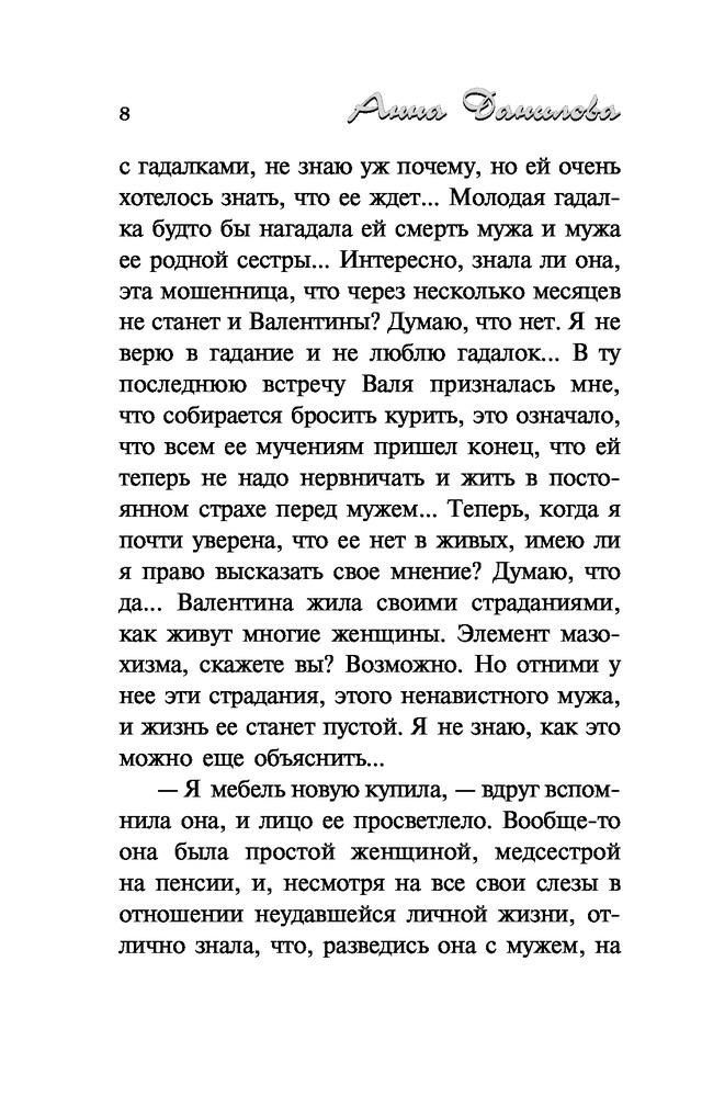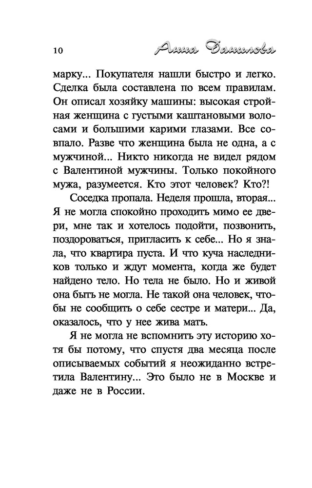 Игры с темным прошлымВ данный момент этот товар отсутствует в продаже. Возможно, у нас найдется аналогичный или похожий товар здесь. Серия: Эффект мотылька (обложка) Соседка Маши Валентина исчезла. О том, что ее убили, стали поговаривать уже на третьи сутки. Но мало ли куда может отправиться женщина на три дня? Тем более вдова, которая десять лет прожила без мужской ласки и терпела от супруга лишь унижения. Маша, убегая от своих проблем, уезжает на время в Болгарию и встречает там пропавшую женщину. А та проходит мимо, будто не узнавая свою давнюю знакомую... |
