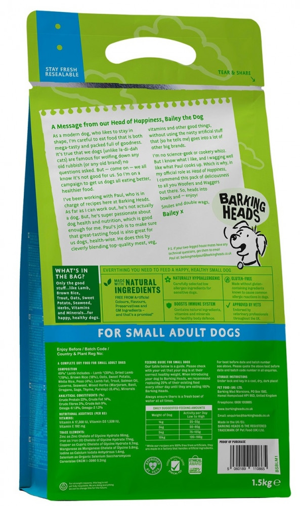 | Barking Heads Корм для собак малых пород с ягненком и рисом «Мечты о ягненке» (1,5 кг)