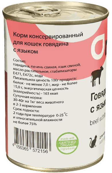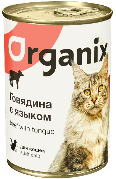 | Organix Консервы для кошек «С говядиной и языком» (410 г)+41 (бонус)