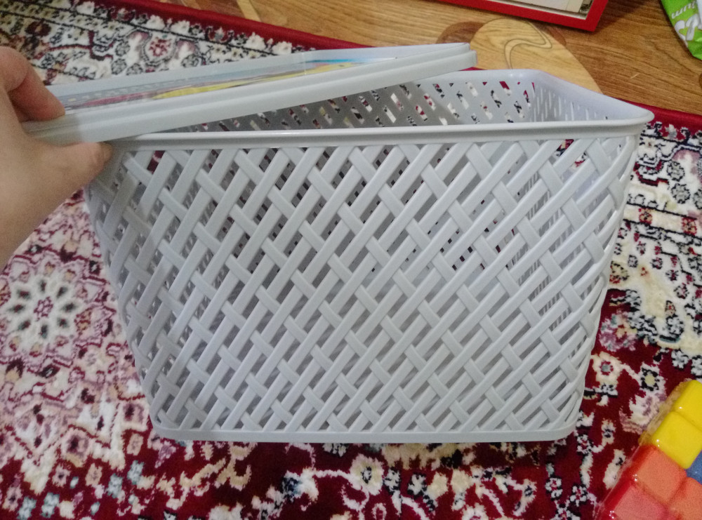 Корзинка отличная! Взяла для кубиков. Запаха нет,цвет светло-серый! В общем,мне нравится! Заказала ещё одну такую же! Спасибо, Флип!