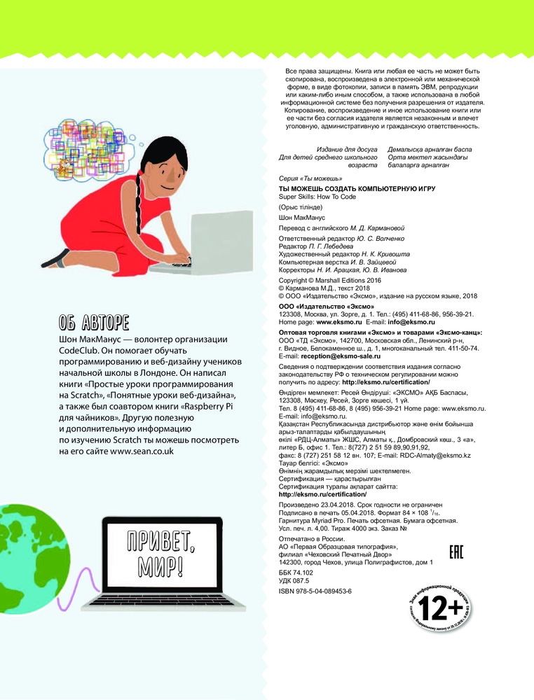 Ты можешь создать компьютерную игруВ данный момент этот товар отсутствует в продаже. Возможно, у нас найдется аналогичный или похожий товар здесь. Серия: ТЫ МОЖЕШЬ Хочешь научиться программировать, но не знаешь, с чего начать? Эта книга поможет тебе пройти — шаг за шагом — путь от написания простых программ с помощью Scratch до приобретения навыков, которые помогут тебе создавать компьютерные игры и даже сайты. Изучи основы программирования и создай собственную компьютерную игру! |