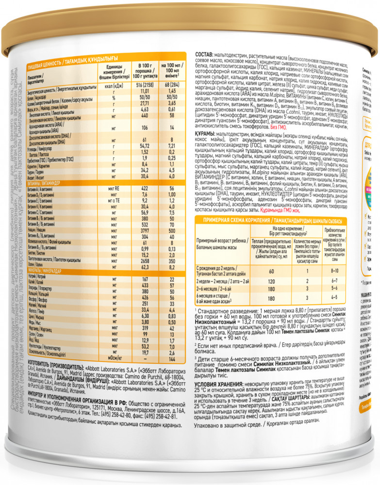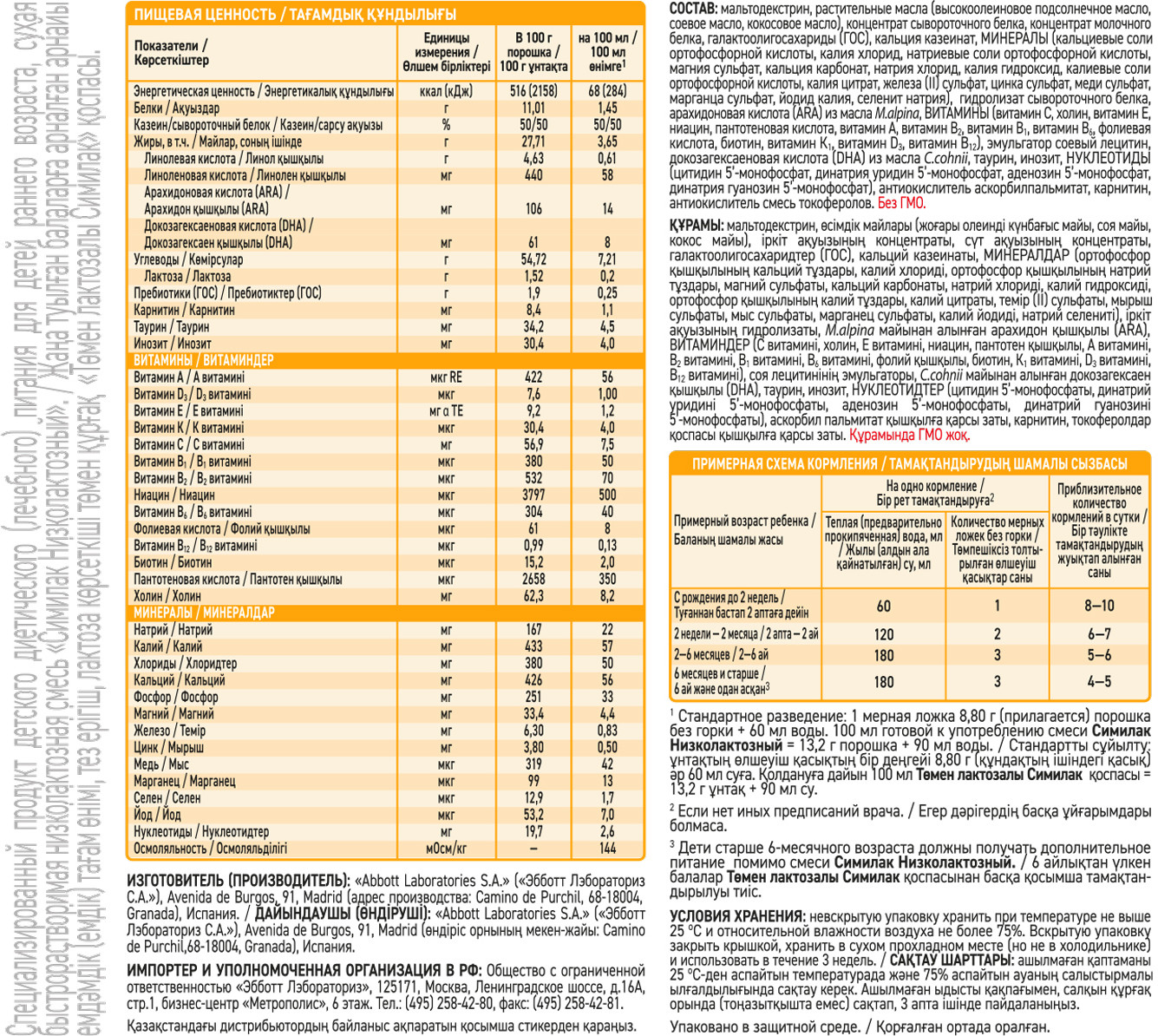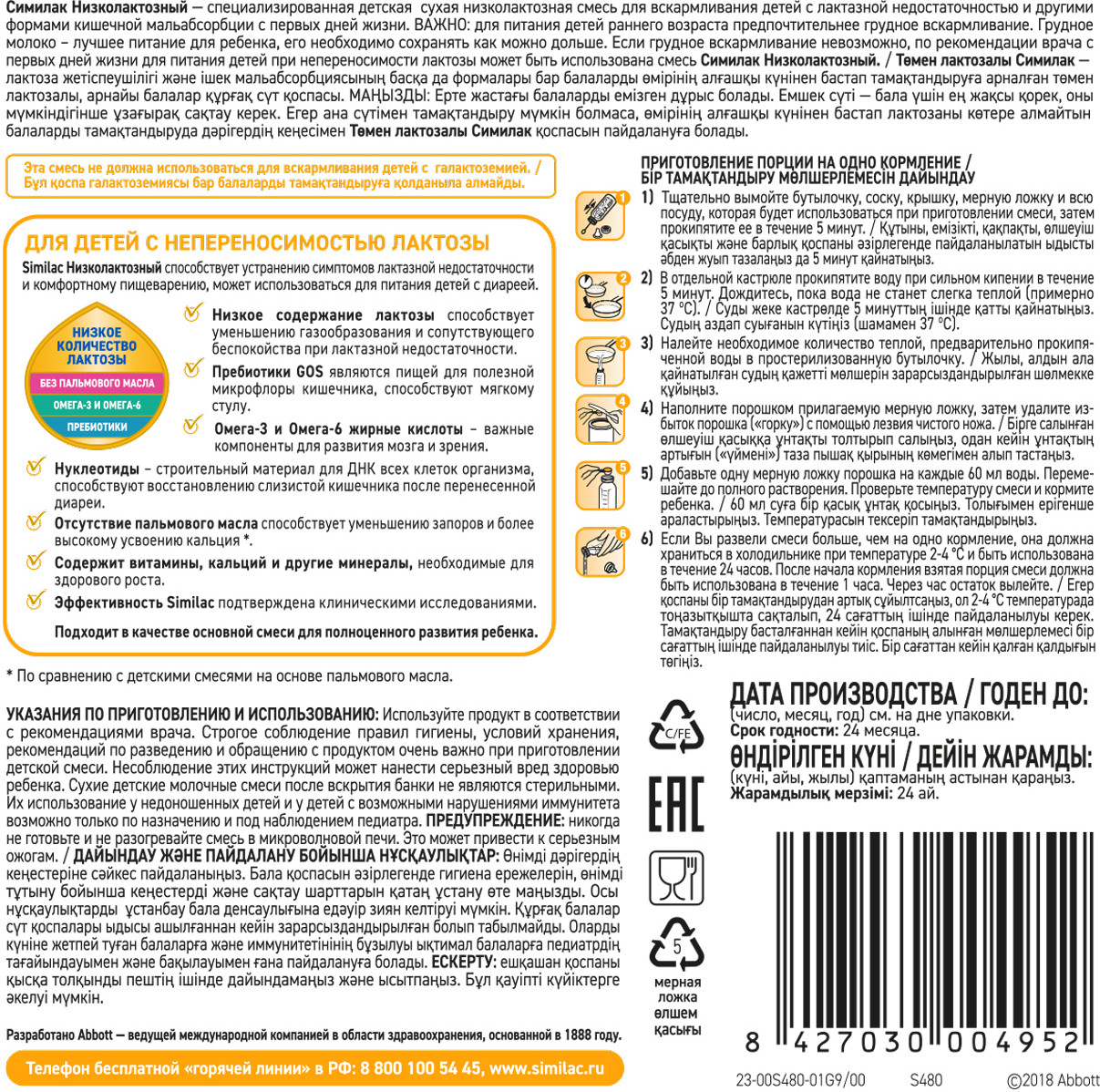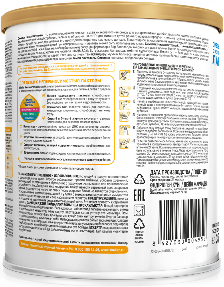 Специализированная детская сухая низколактозная смесь для вскармливания с рождения детей при повышенной чувствительности к лактозе, (лактазной недостаточности) и диарее. Данная смесь не должна использоваться для вскармливания детей с галактоземией. Низкое содержание лактозы — менее 0,2 г/100 мл Российские эксперты не рекомендуют полностью исключать лактозу из рациона детей с лактазной недостаточностью. Лактоза важна для развития головного мозга и зрения, а также поддержания кишечной микрофлоры. |