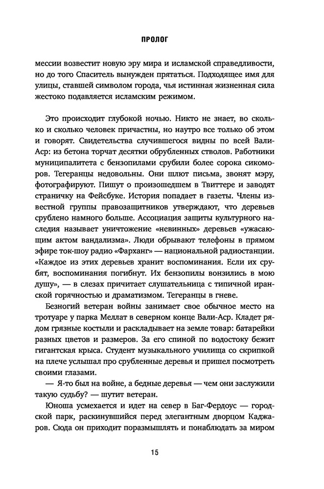 Дочитала книгу, хочется дополнить или даже исправить предыдущий мой отзыв. Книга о том, как сильно изменился Иран после исламской революции, насколько она повлияла на жизни людей. О различных организациях, силой поддерживающих порядок в стране, о людях, потерявших весь свой прежний статус и богатства. О нищете и наркозависимости. О том, как иранцы несмотря ни на что любят свою родину и стараются за нее бороться.