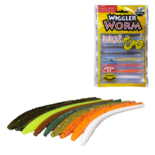 Lucky John Слаги съедобные искусственные «Wiggler Worm 5.84» (цвет MIX1, 9 шт)