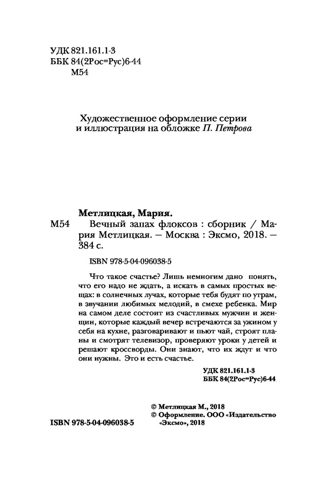 Серия: Женские судьбы. Уютная проза М.Метлицкой(обл) Что такое счастье? Большинству кажется, что счастье — это что-то особенное. Оно обязательно наступит, только надо дождаться. А обычная жизнь — репетиция, подготовка к той самой счастливой жизни. И только немногим дано уже в молодости понять, что счастья не надо ждать, его надо искать в самых простых вещах: в солнечных лучах, которые тебя будят по утрам, в звучании любимых мелодий, в смехе ребенка. Мир на самом деле состоит из счастливых мужчин и женщин, которые каждый вечер встречаются за ужином у себя на кухне, разговаривают и пьют чай, строят планы и смотрят телевизор, проверяют уроки у детей и решают кроссворды. Они знают, что их ждут и что они нужны. Это и есть счастье. |