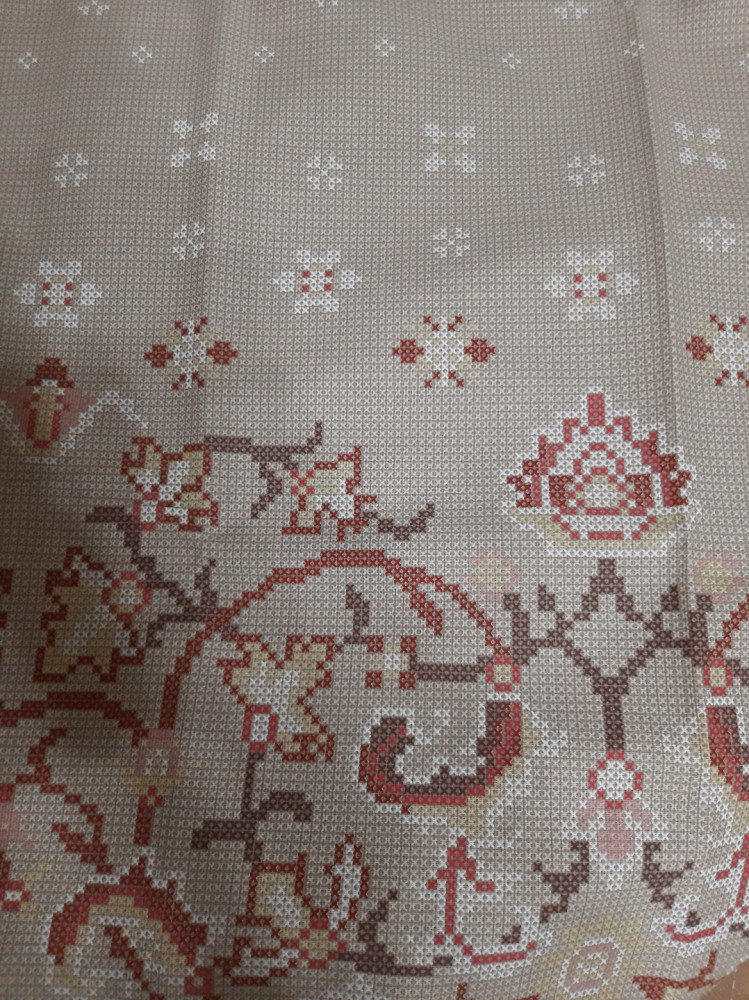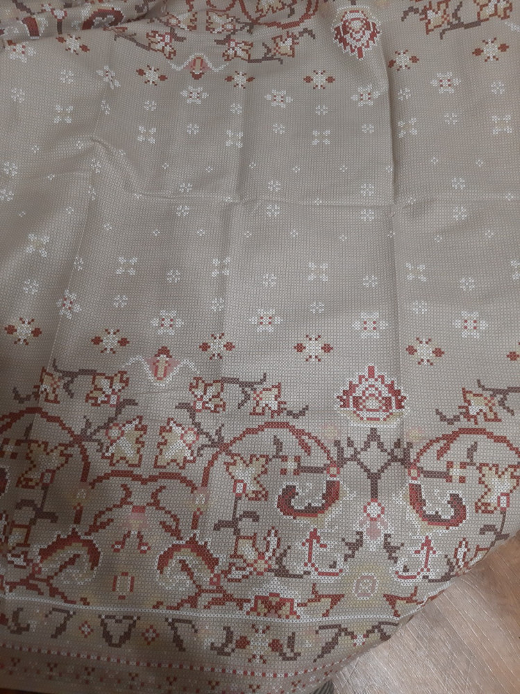 Скатерть более-менее подошла по цветовой гамме, но на фото она более темная, чем пришла в заказе, и рисунок на фото сине-коричнево-бежевый, а у меня - коричнево-красно-желтый. Как говорится, почувствуйте разницу. Трудно определится с цветом по интернету, к сожалению. Но качество у скатерти хорошее.