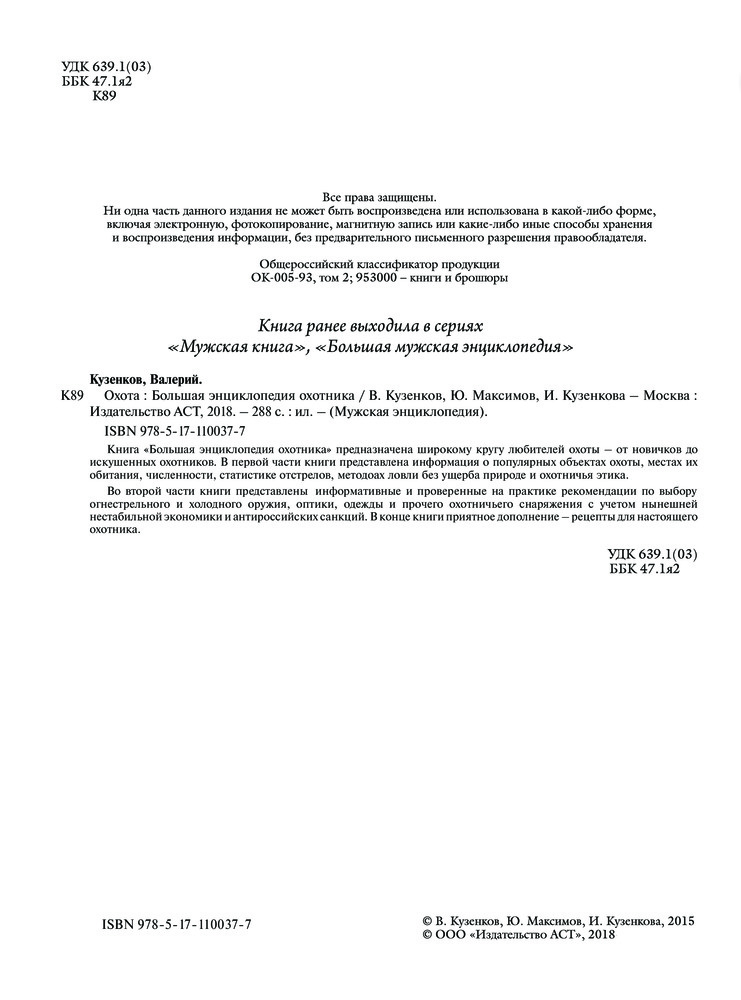 | Охота. Большая энциклопедия охотника Ю. А. Максимов, Ираида Павловна Кузенкова, Валерий Петрович Кузенков