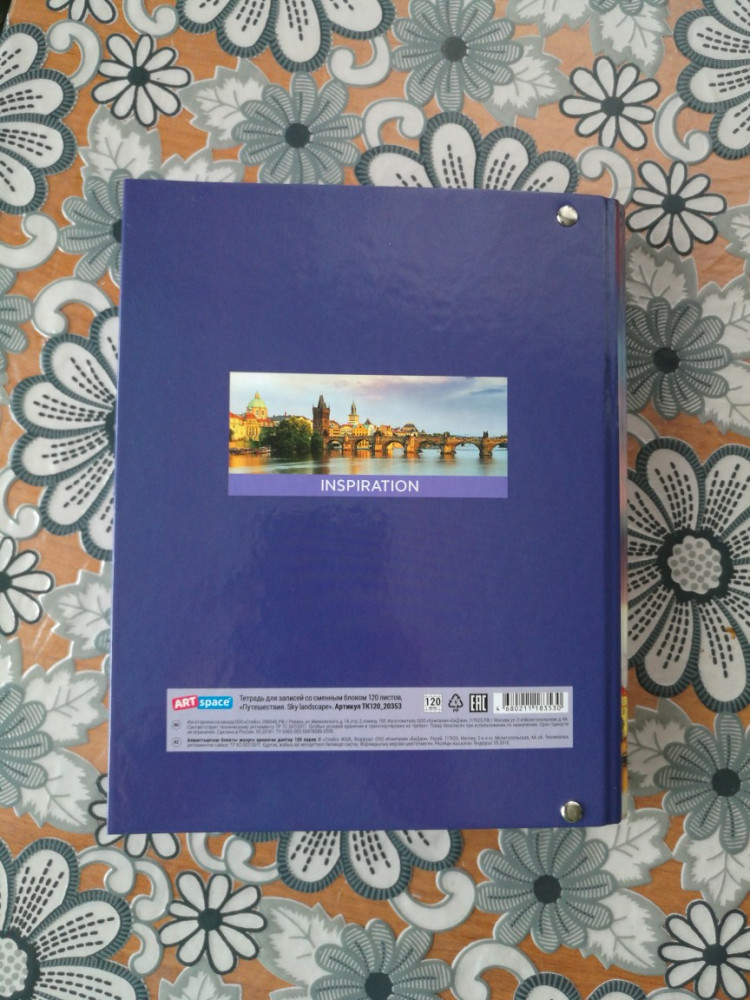 Очень яркая и красивая обложка, кольца хорошо разводятся,что даёт возможность заменять странички,большое спасибо:з