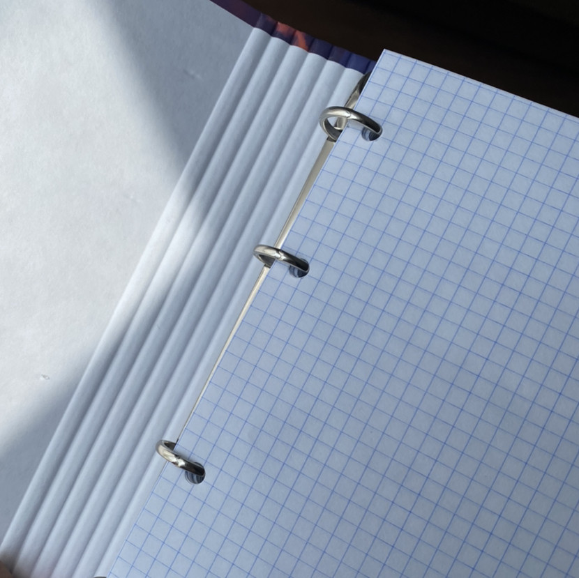 Хорошая тетрадь - красива обложка, крепкий механизм. Есть особенность расположения крепления оно чуть смещено с центра, и поэтому нужны листы по размеру чуть меньше, чем А5. Иначе торчат края.