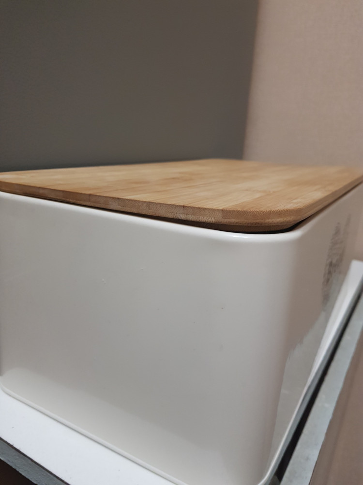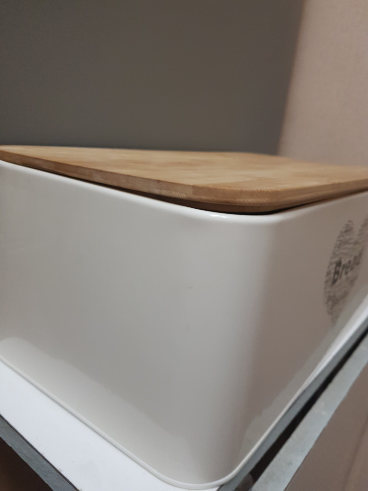 Хлебница красивая, основная часть выполнена из металла, крышка из дерева. Огромный минус в том, что спустя 2 недели использования деревянная крышка деформировалась(выгнулась), из-за чего теперь не плотно закрывается. Использовали ее только в качестве крышки, не мыли водой и даже не резали на ней ничего.