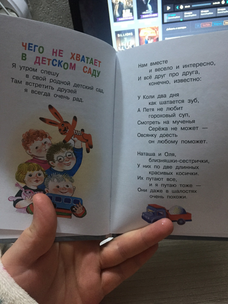 Взяла книгу по отзыву в интернете. Собираемся идти в сад летом, хочется подготовить ребёнка. Рассказами о саде. Книжки -малышки, с размером больше ладонь. Твёрдая обложка, 45 страниц. Содержание стихотворений: какие то стихотворения мне понравились, какие то нет. То от склада мало, то ли смысла. Но читать будем. И не раз. Рекомендую данную серию книг