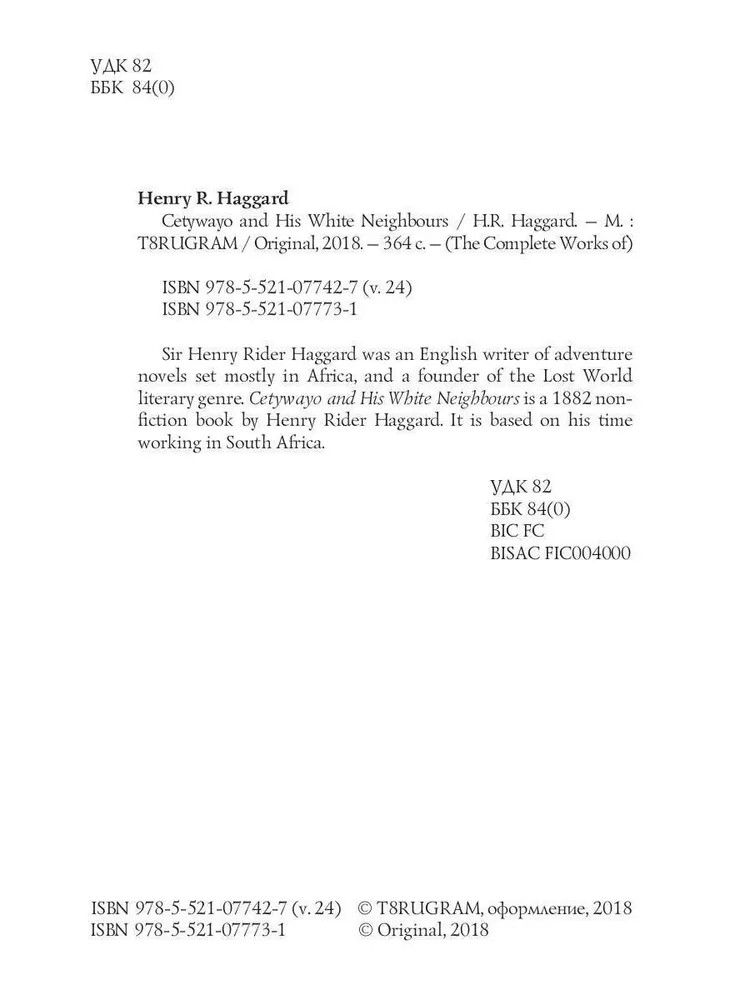 Серия: The Complete Works of Sir Henry Rider Haggard was an English writer of adventure novels set mostly in Africa, and a founder of the Lost World literary genre. Cetywayo and His White Neighbours is a 1882 non-fiction book by Henry Rider Haggard. It is based on his time working in South Africa.  |