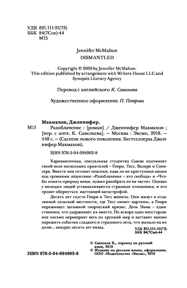 РазоблачениеВ данный момент этот товар отсутствует в продаже. Возможно, у нас найдется аналогичный или похожий товар здесь. Серия: Саспенс нового поколения. Бестселлеры Дженнифер Макмахон Дженнифер Макмахон — автор бестселлеров с мировым именем, признанный мастер психологической прозы с элементами мистики и хоррора. Ее книги переведены более чем на 10 языков мира и не раз становились бестселлерами по версии New York Times. «Разоблачение» — роман, написанный в лучших традициях Стивена Кинга, создающий атмосферу фильмов Альфреда Хичкока и Дэвида Линча. Он придется по вкусу всем любителям пощекотать себе нервы. |