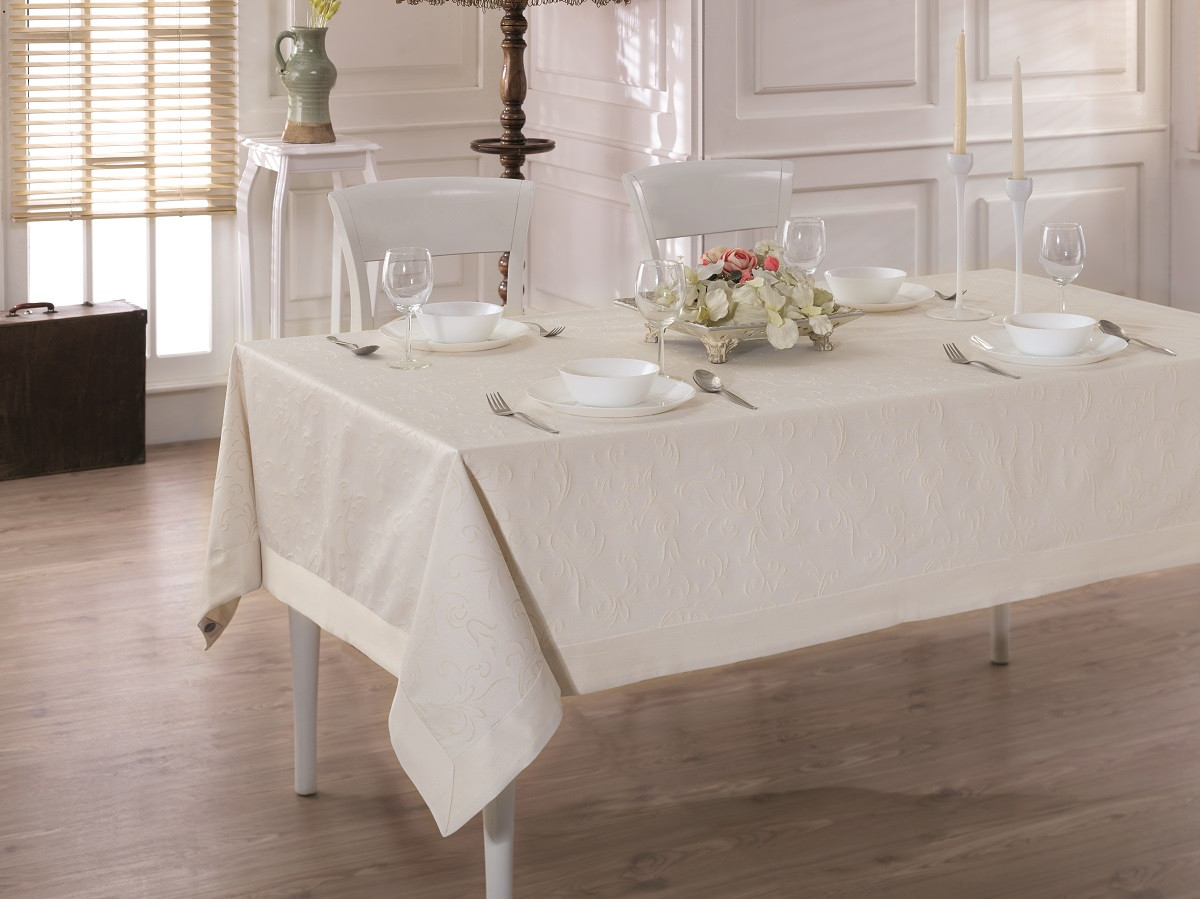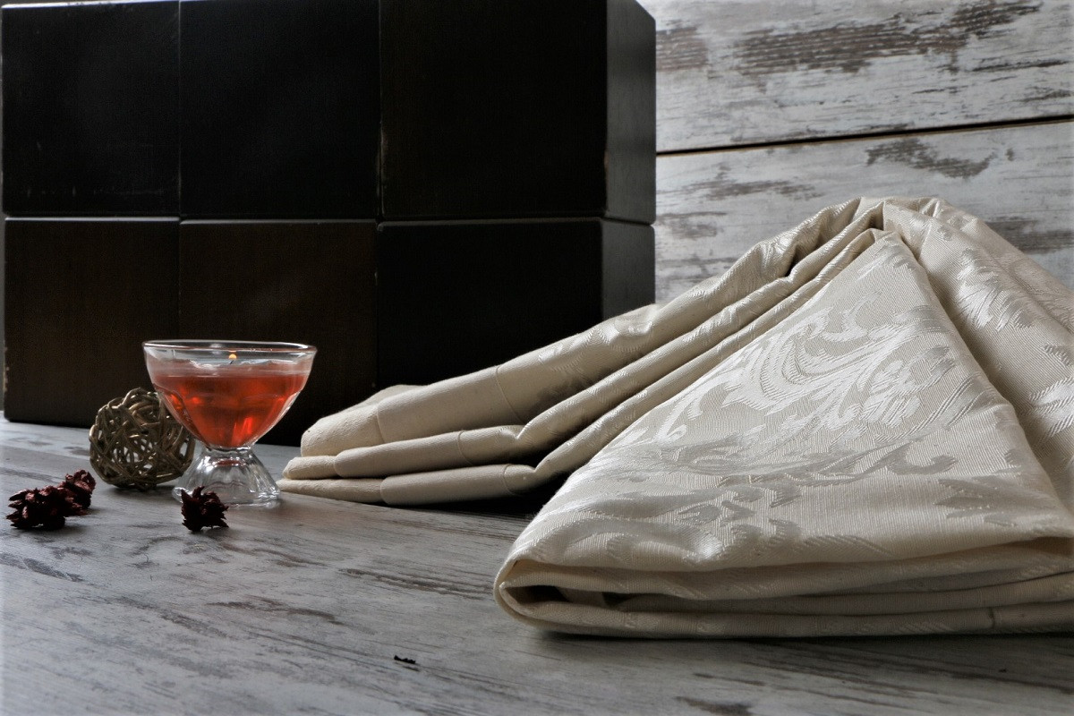 Скатерть точь в точь как на картинке. Качество хорошее, после стирки нигде ничего не перекосило. Плотная, не слишком тяжёлая, гладится без проблем.