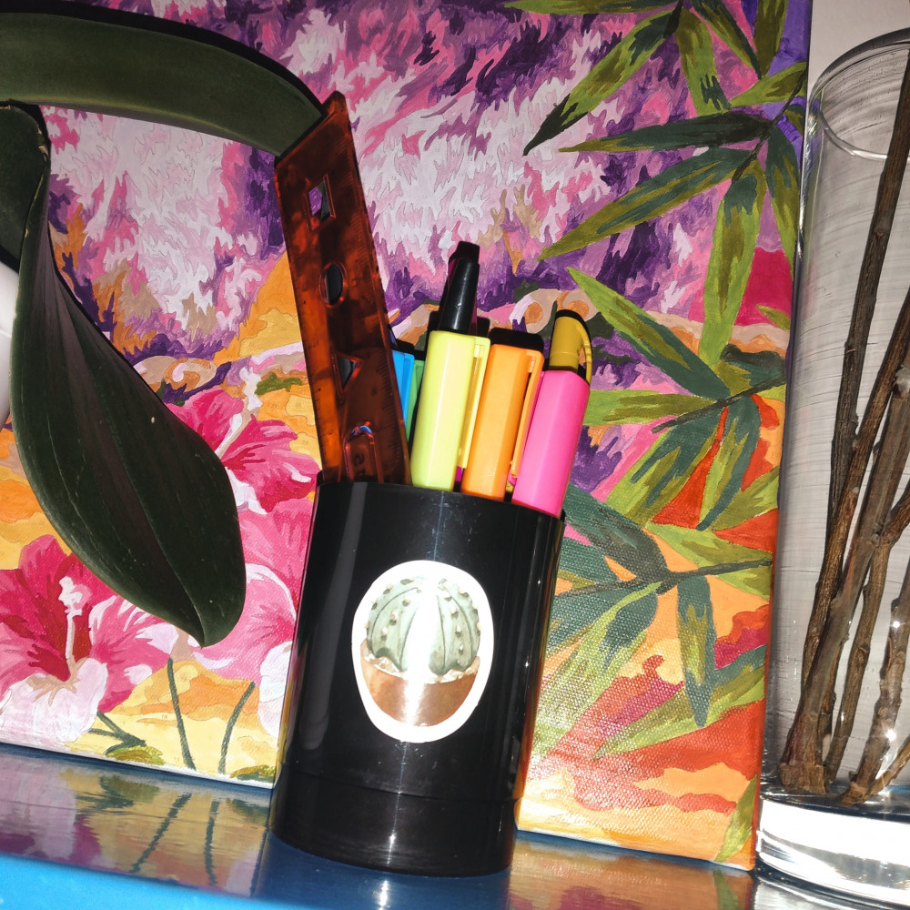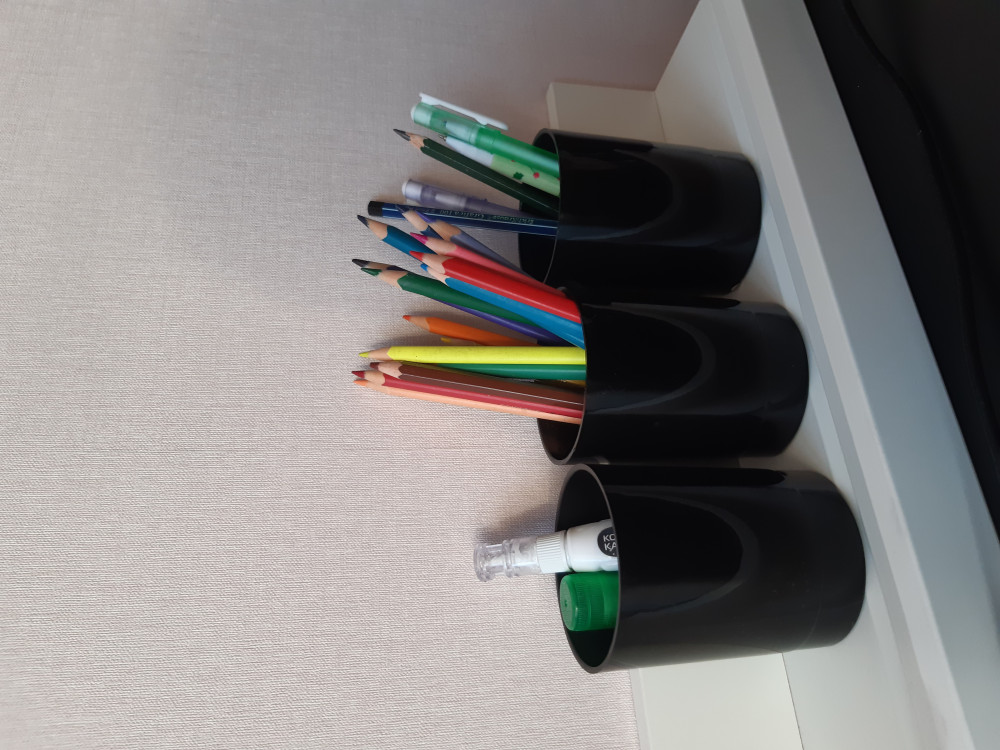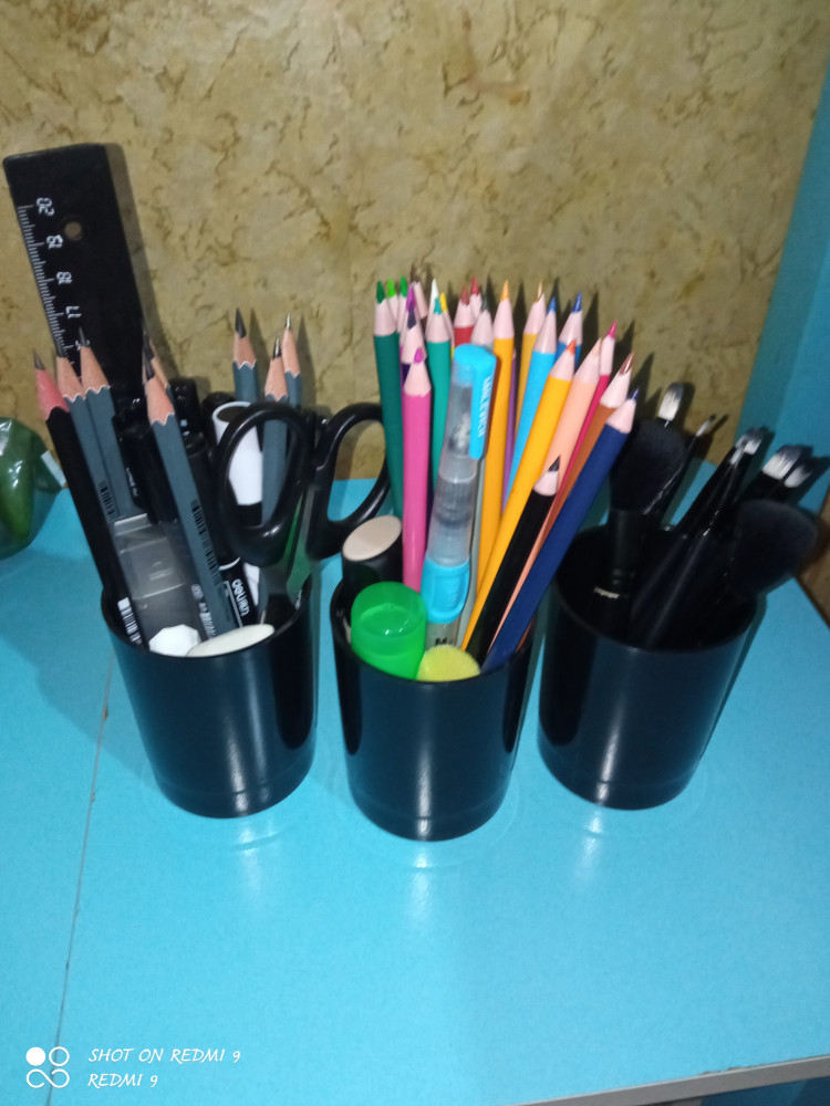 По фото думала что стаканчики будут побольше, оказались чуть меньше, но за такую цену это не проблема. Они глянцевые, подойдут для хранения карандашей/ручек, или кистей для макияжа.