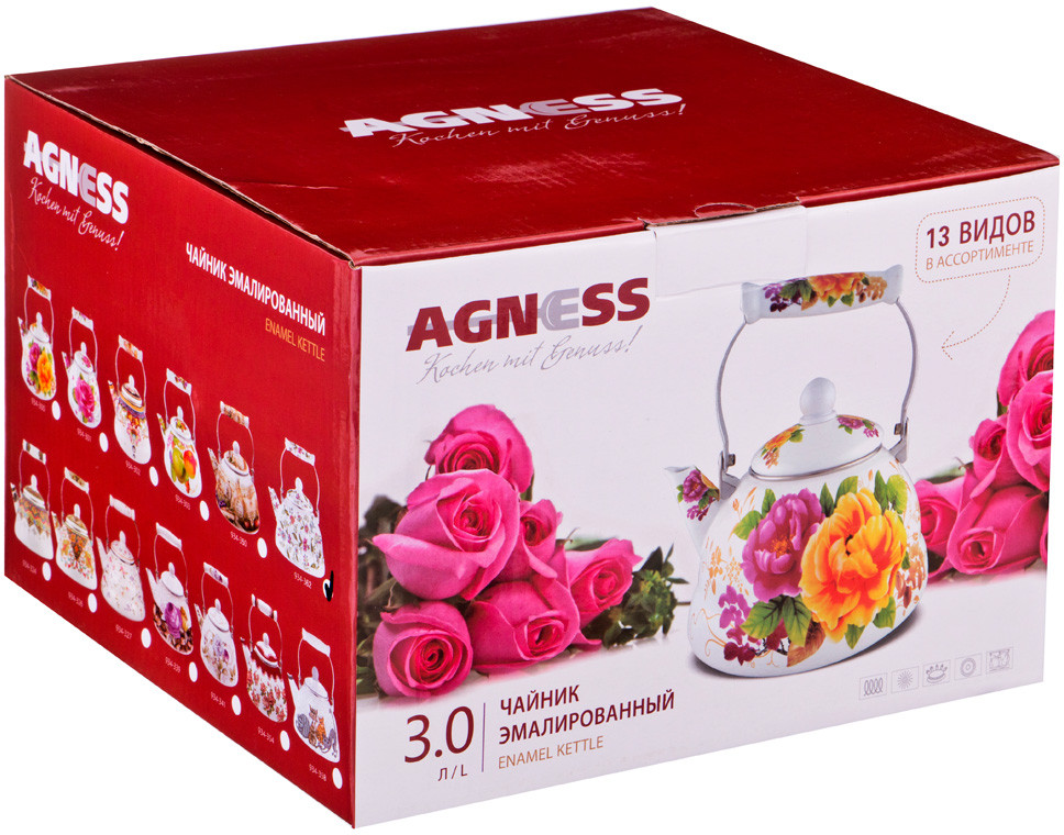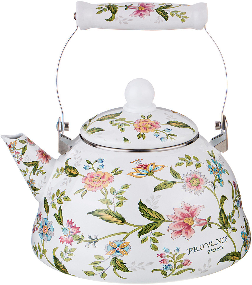 Чайник изготовлен из высококачественного стального проката с эмалированным покрытием. Внешние стенки оформлены ярким красочным изображением цветов. Эмалированная посуда очень удобна в использовании, она практична и элегантна. За такой посудой легко ухаживать: чистить и мыть.
