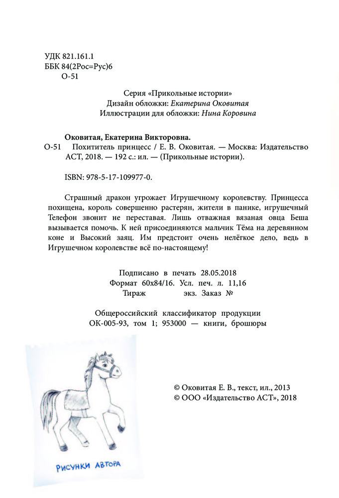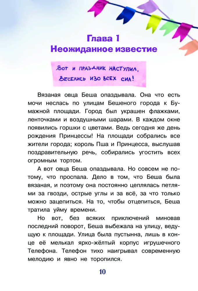 Серия: Прикольные истории Страшный дракон угрожает Игрушечному королевству. Принцесса похищена, король совершенно растерян, жители в панике, игрушечный Телефон звонит не переставая. Лишь отважная вязаная овца Беша вызывается помочь. К ней присоединяются мальчик Тёма на деревянном коне и Высокий заяц. Им предстоит очень нелёгкое дело, ведь в Игрушечном королевстве всё по-настоящему! |