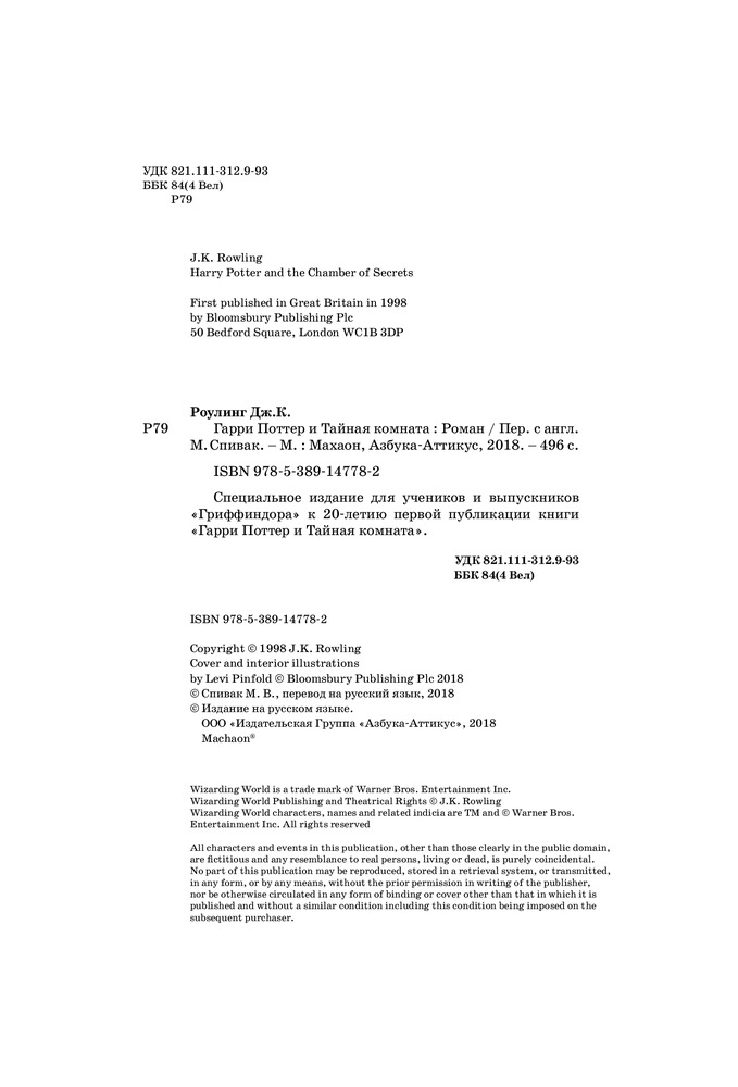 В данный момент этот товар отсутствует в продаже. Возможно, у нас найдется аналогичный или похожий товар здесь. Серия: Гарри Поттер Специальное издание для учеников и выпускников «Гриффиндора» к 20-летию первой публикации книги «Гарри Поттер и Тайная комната». |