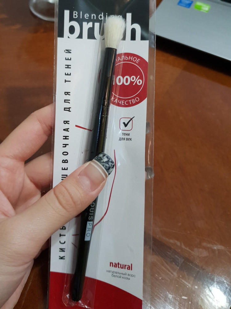 Кисточка понравилась, есть с чем сравнить из люкса,но эта кисть отлично справляется со своей задачей, растушевывает. Можно светлый оттенок теней под бровь. Цена радует!